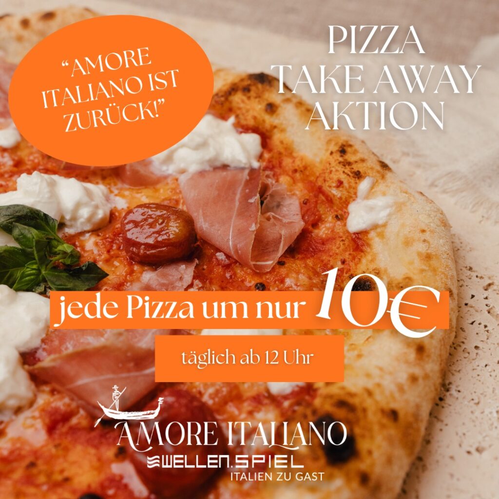 AKTION – all unsere Pizzen gibt’s ab sofort TAKE AWAY für nur 10€ – knusprig-frisch aus dem Ofen & wo immer ihr wollt!